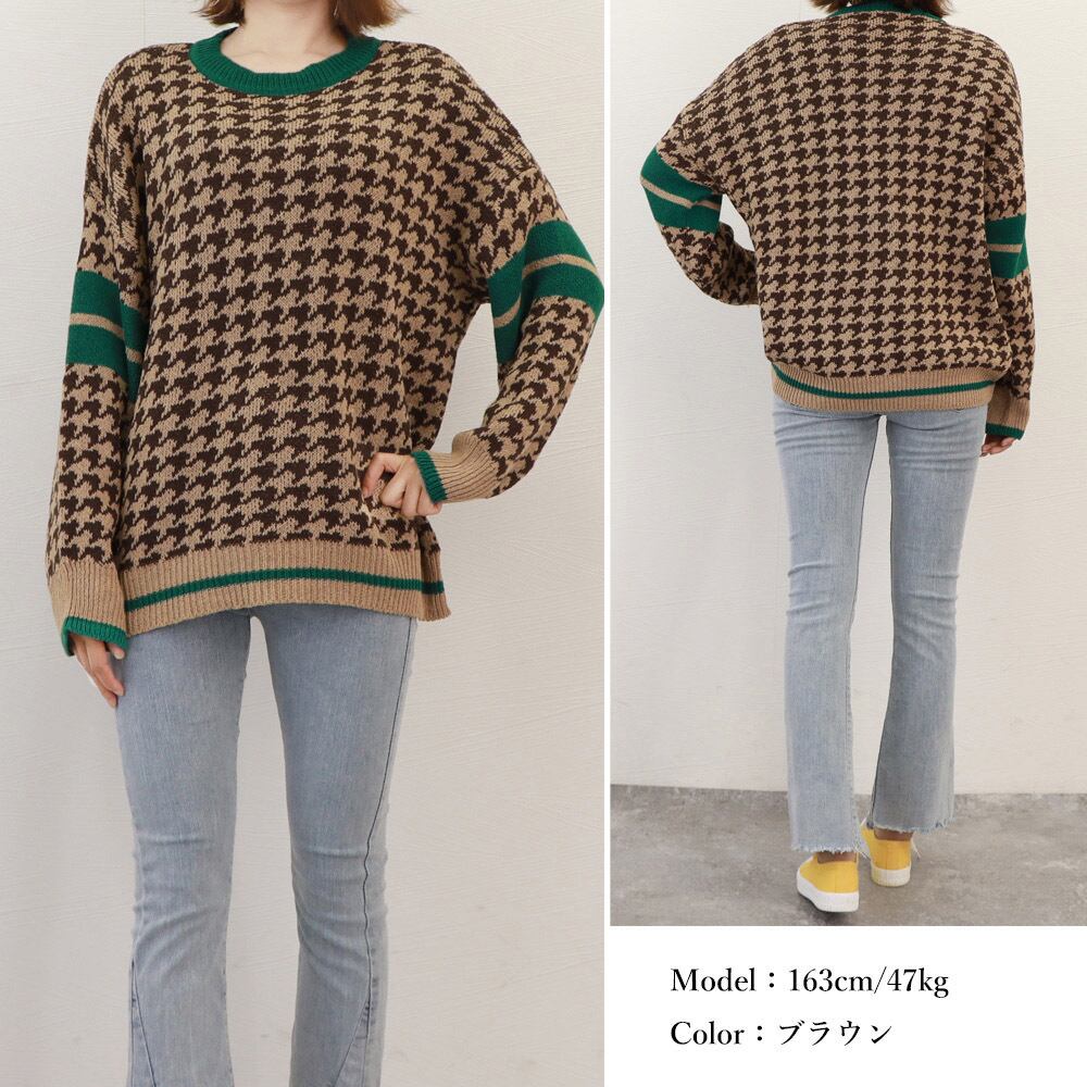 千鳥柄ニットトップス 秋冬長袖韓国ニット