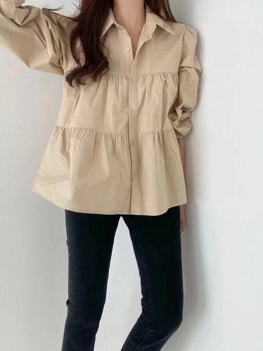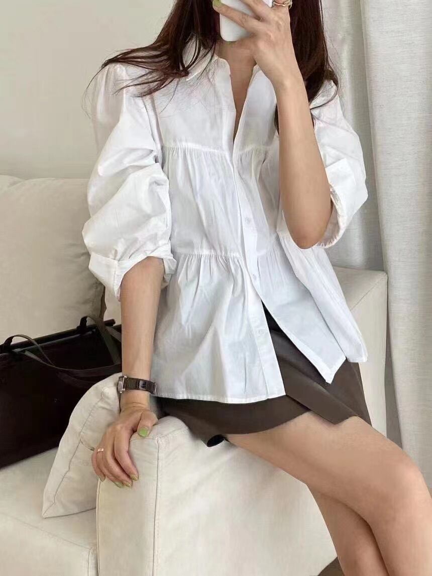 2025新作 ティアードブラウス トップス パフスリーブ ホワイト 白 ゆったり シャツ
