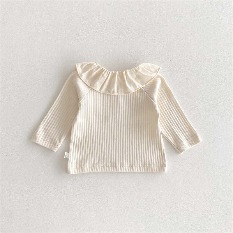 2025春新作 子供服 女の子 ラッフルカラー リブ 長袖 Tシャツ カジュアル トップス 柔らか