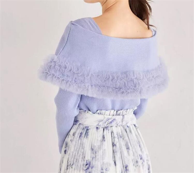 セーター ニットトップス 上着 大人気 一言の肩 皿花 マント式ニット カットソー