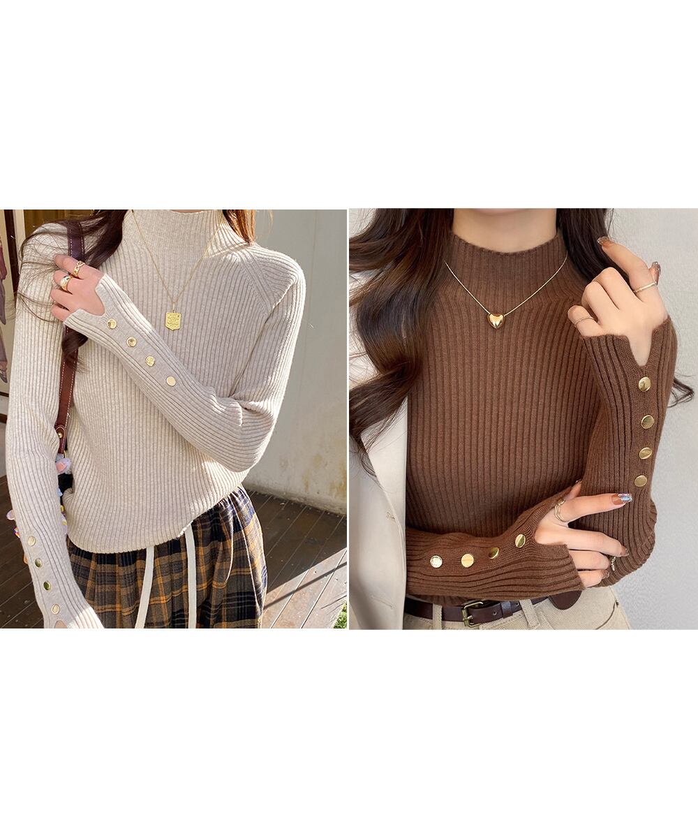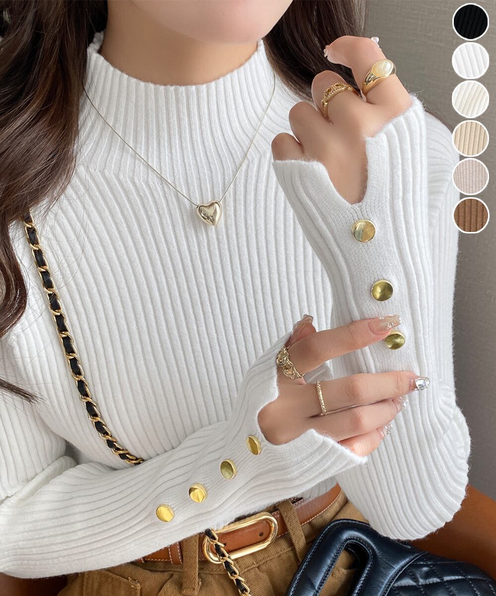 プチハイネック秋服/長袖ニットきれいめ/可愛いニットお洒落