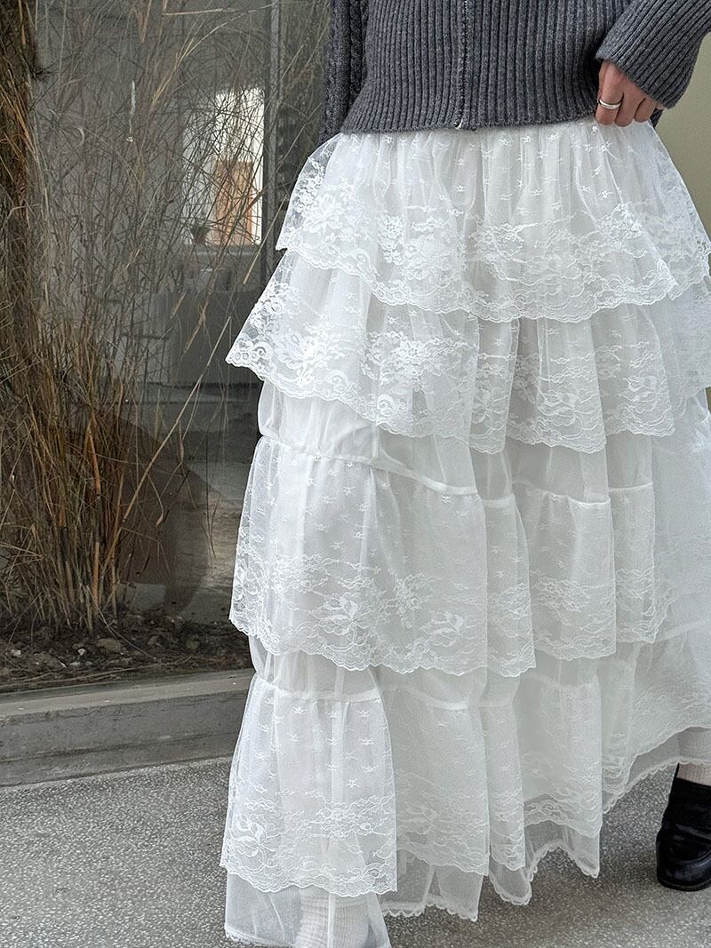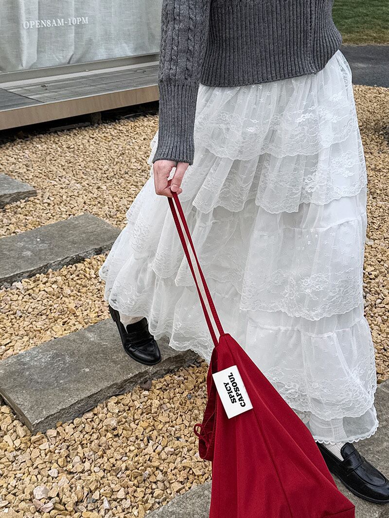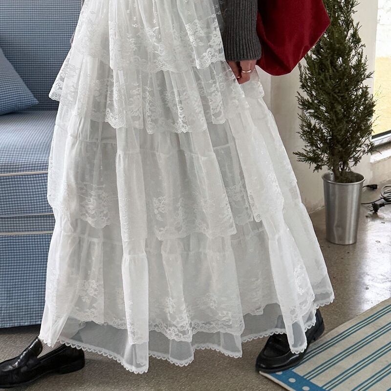 u26359 レディース ボトムス スカート ロング ハイウエスト 2025春新作 レース 韓国風