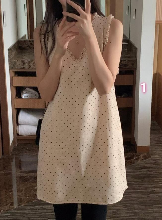 2025春秋新作 女 レディース ハイウエスト 袖なし ドット ミニ ワンピース ドレス タイトスカート