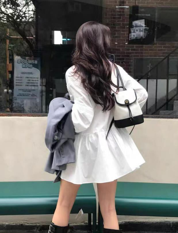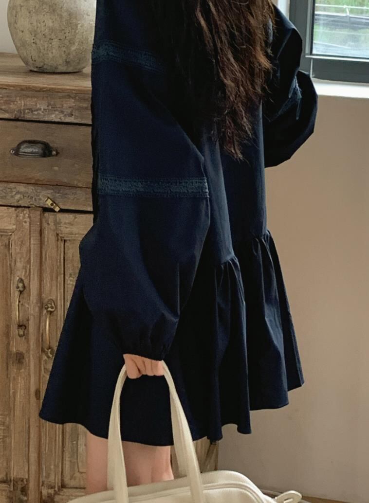 2025春秋新作 女 レディース ハイウエスト 長袖 無地 ミニ ワンピース ドレス 台型スカート
