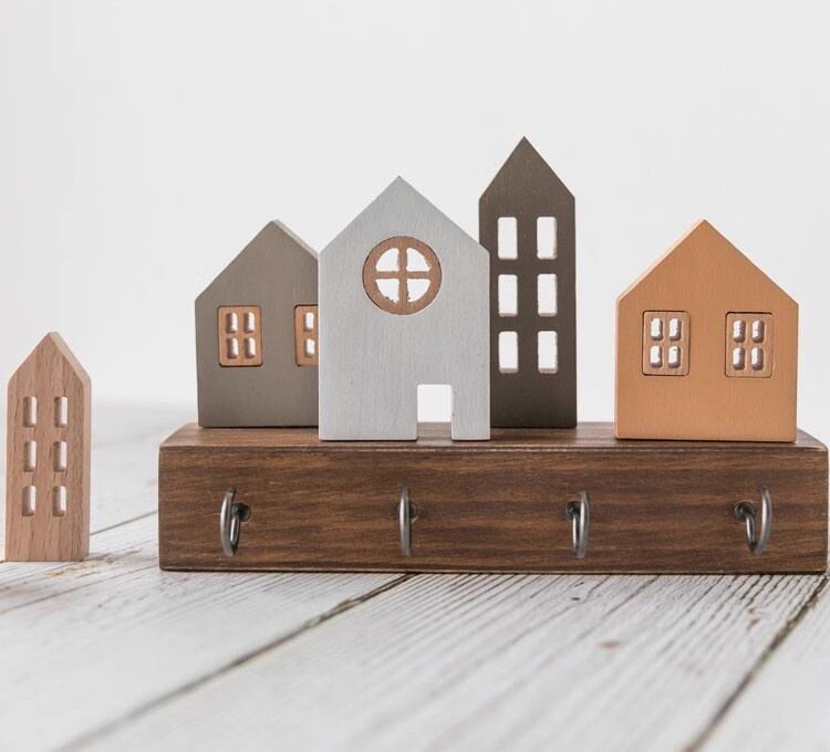 木製収納棚 かわいい デザインセンス 鍵収納 壁掛 鍵フック 玄関収納 靴箱装飾 壁画掛