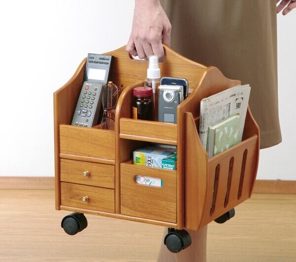 よく使うリモコンや眼鏡・小物をまとめて収納。