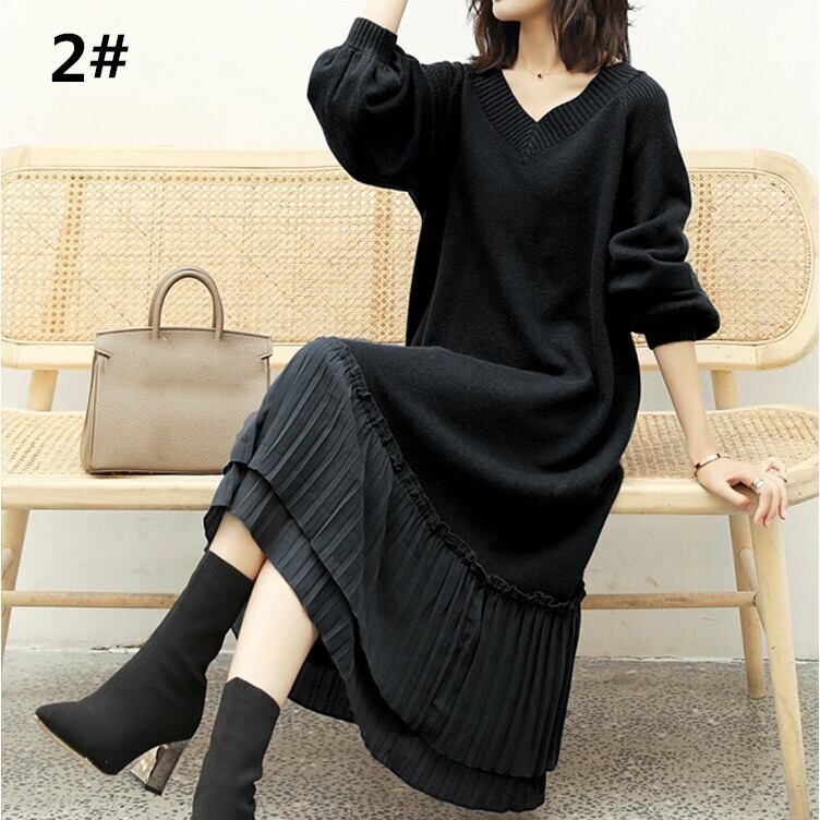 ニットワンピース ニット ワンピース レディース 秋冬 春 vネック 長袖 パフスリーブ 全6色