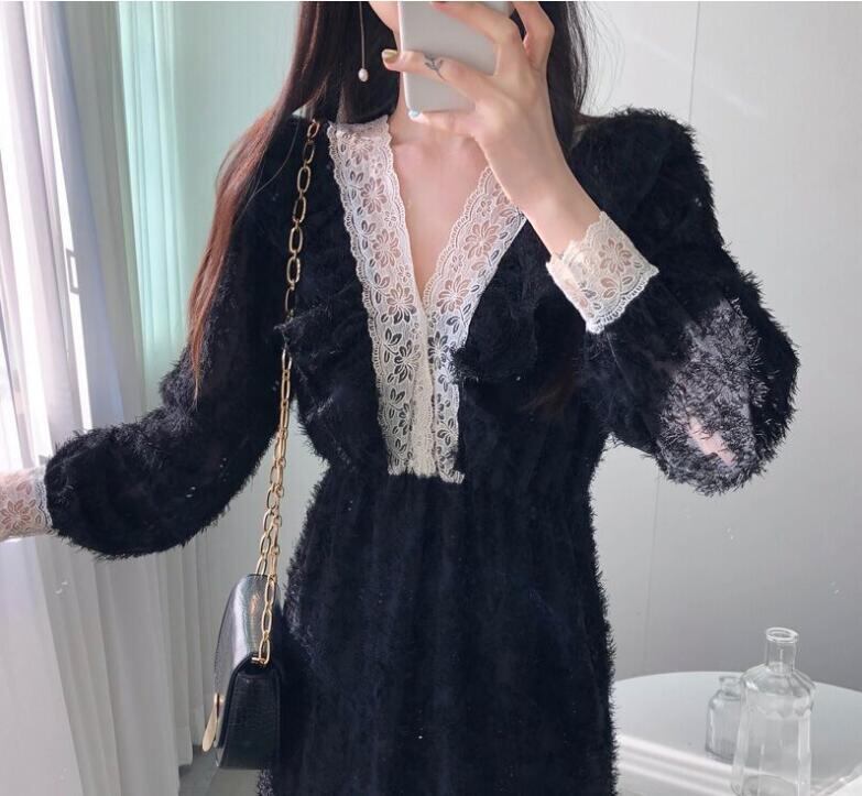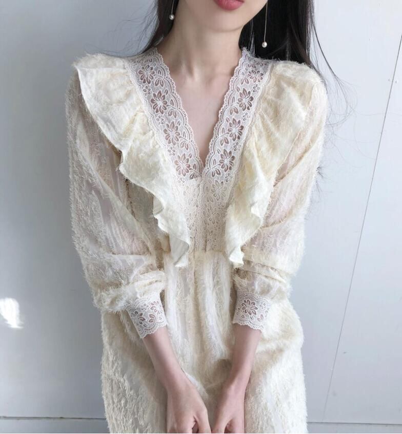 春夏新作 甘い宮廷風 レディース Vネック ワンピース おしゃれ 上品な