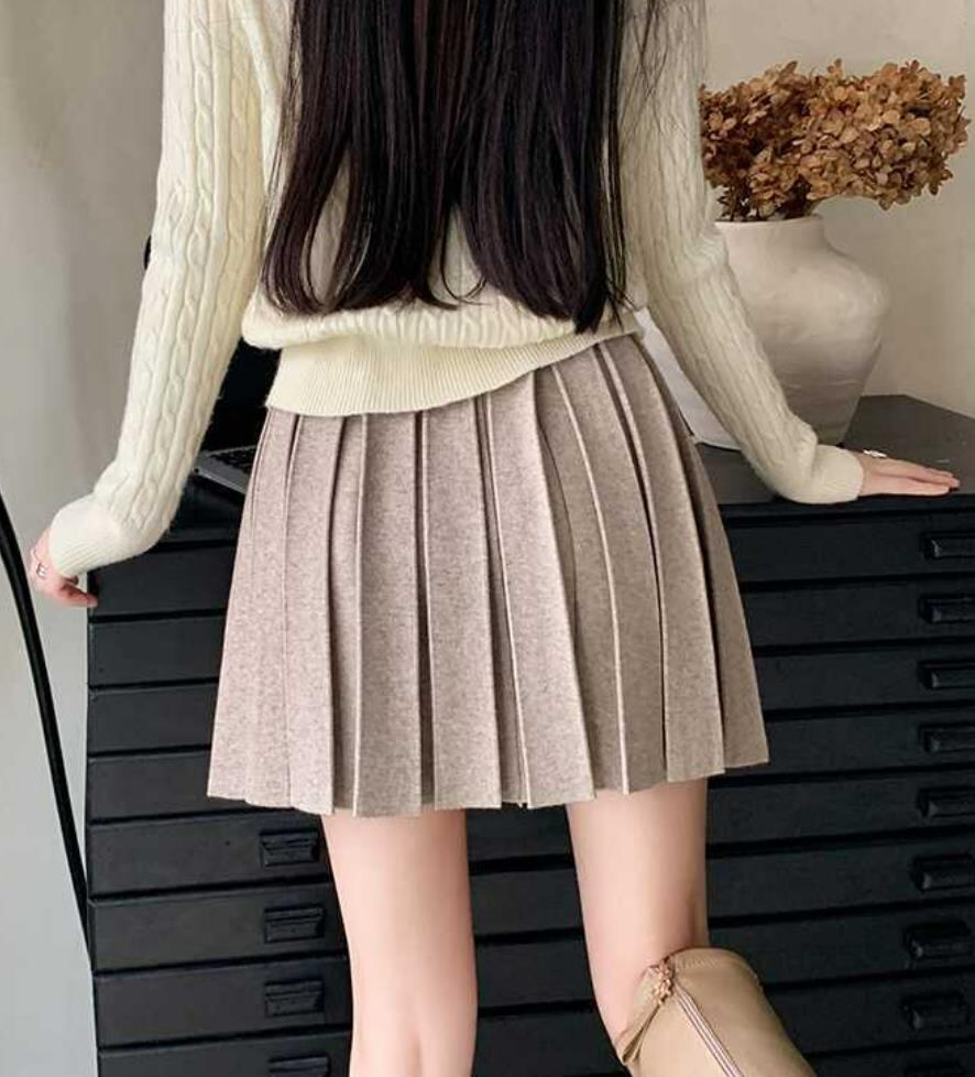 2025秋冬新作 ボトムス 女 レディース ハイウエスト ニット ミニスカート プリーツスカート