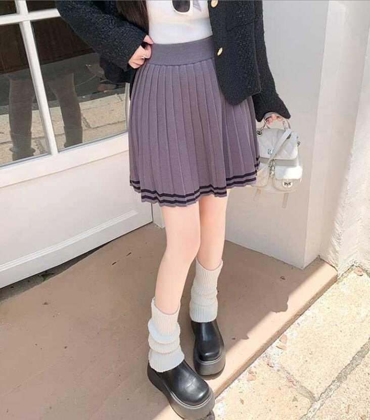 2025春秋新作 ボトムス 女 レディース ハイウエスト ニット ミニスカート プリーツスカート