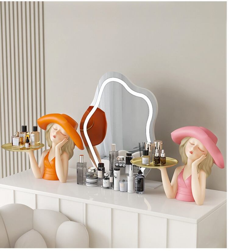 ホームデコレーション モダンガール像収納トレイ 樹脂製置物 インテリアオーナメント装飾用 ギフト