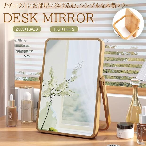 【20.5*18*23 2点】卓上ミラー 竹製 スタンド鏡 スタンドミラー メイクアップミラー お洒落 小物 インテリア